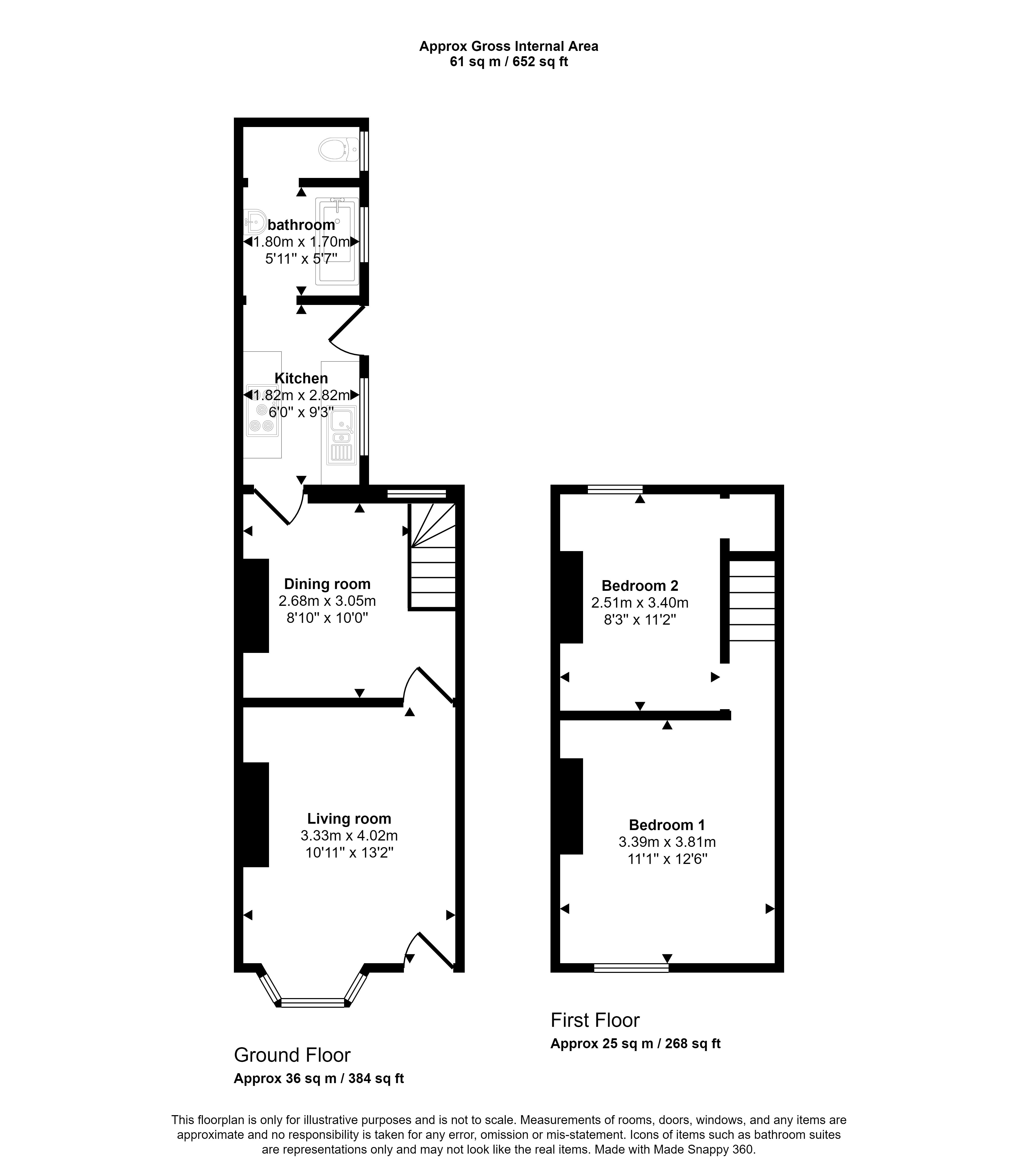Briefly comprising a dining room, living room, kitchen, and bathroom on the ground floor. On the first floor are two double bedrooms. Externally the property has a rear yard.
