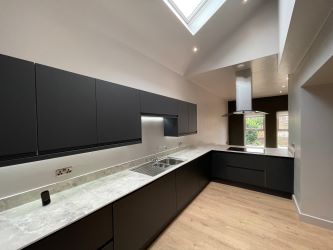 Kitchen - 17'7 x 12'11 - Fitted with a range of base and eye level units. Oven, hob and extractor. Integrated Dishwasher. Sink unit with mixer tap. Part vaulted ceiling with skylight. Spotlights.