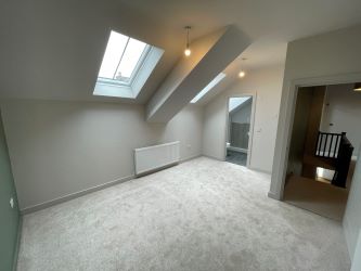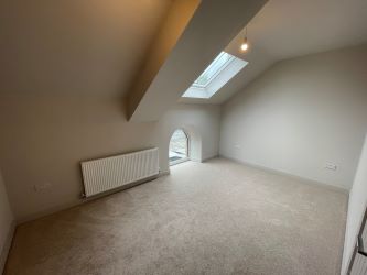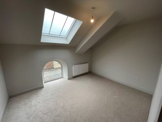 Bedroom 2 - 15'3 x 9'10 - Skylight. Feature Arched window. Radiator. Fitted storage/wardrobe.