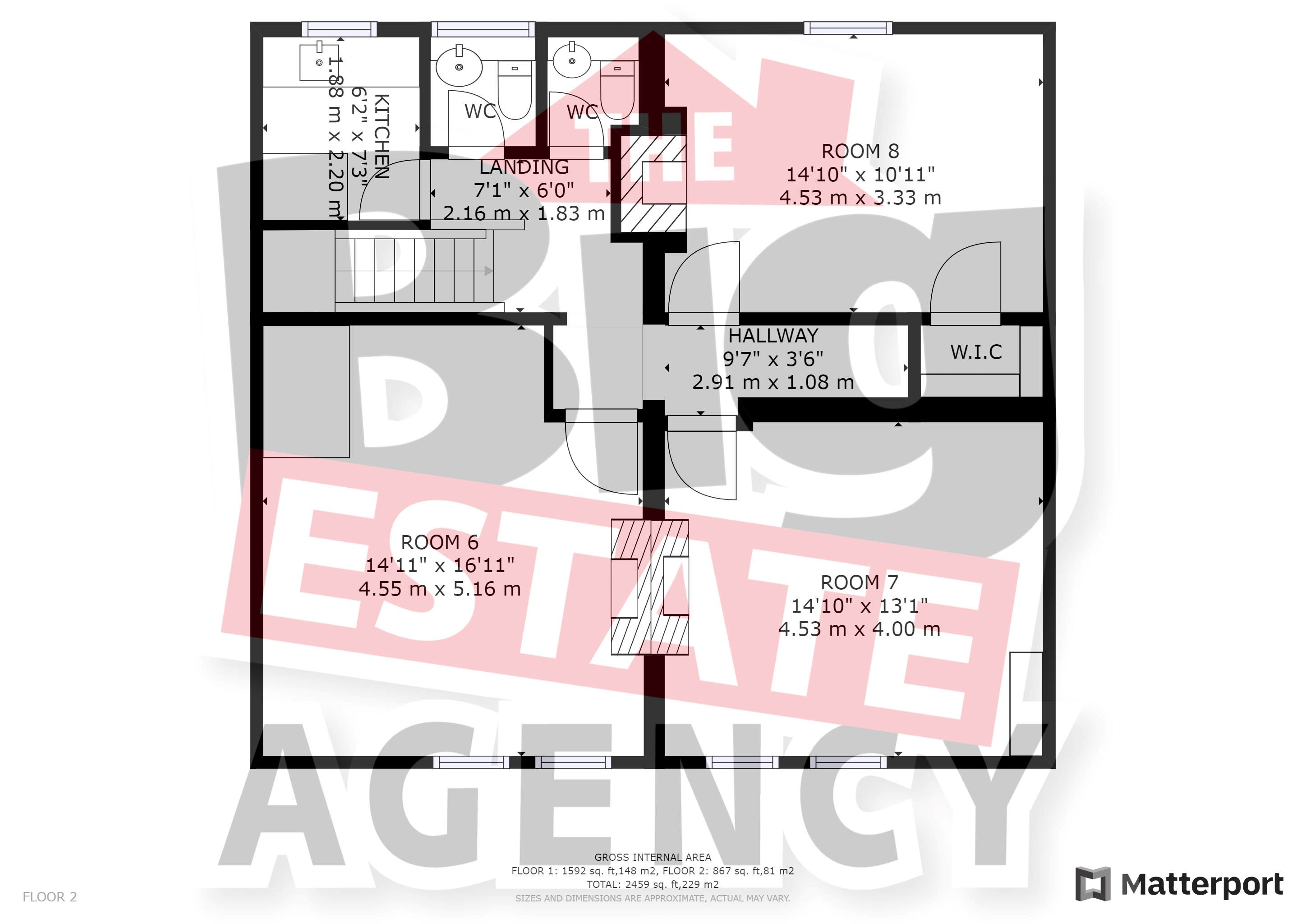 Decorated with white painted walls and grey carpet tiles flooring, this room is naturally lit by the two large windows facing the front of the property.
