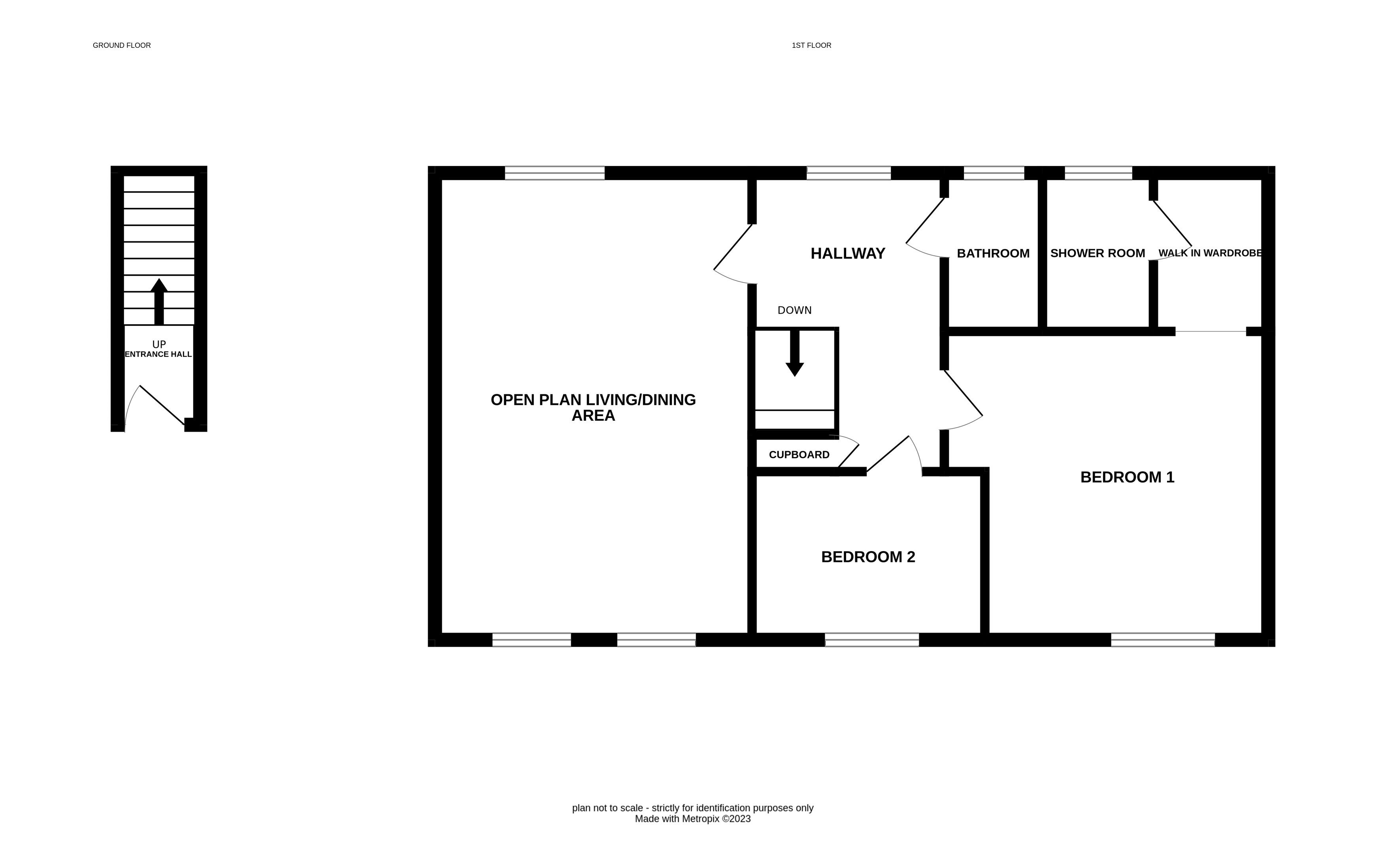 Located in a good cul-de-sac location, this property will appeal to both investors and owner occupiers. This apartment comprises an entrance hallway with stairs to first floor living accommodation; spacious open plan living/kitchen area, main double bedroom with walk-in wardrobe and en-suite shower room, a second double bedroom and a house bathroom. Fitted with double glazing and gas central heating. Garage also included.