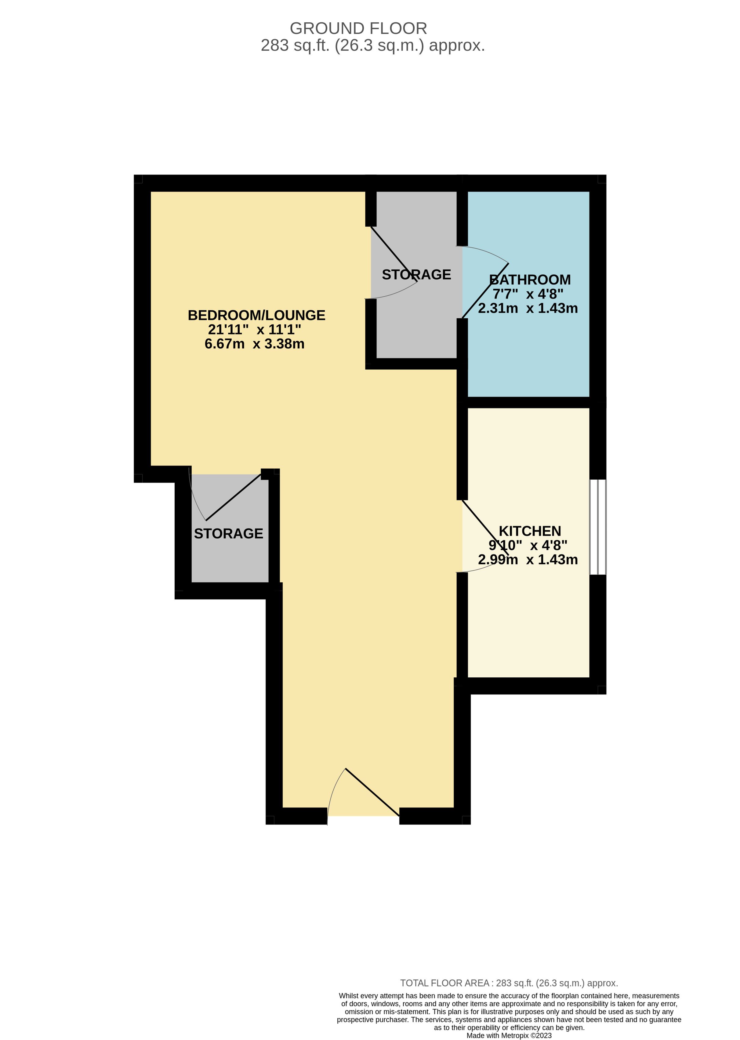 Comprising of a spacious open living/bedroom area, a kitchen, bathroom, and two storage cupboards. This flat is being sold with vacant possession.