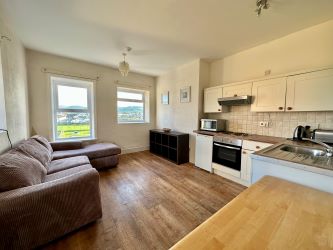 Facing to the rear of the building, this particular property has far reaching views of the mountains and beyond, overlooking the residents parking and play park which sit below.