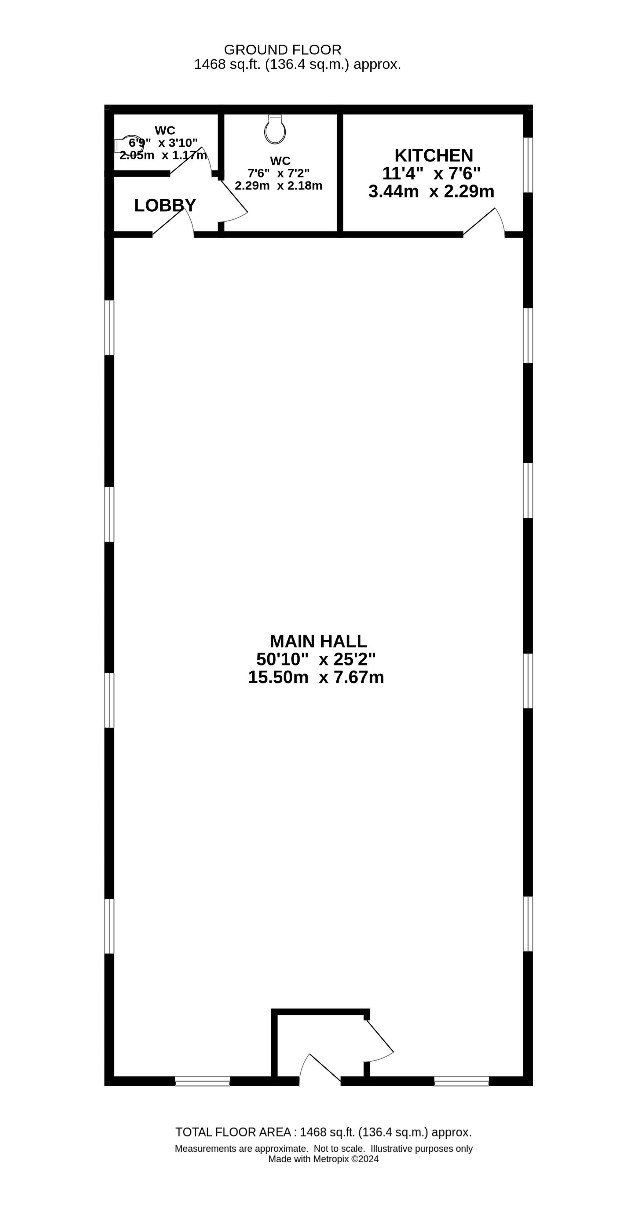 Accomodation. Main Hall, Ladies and gents toilets and a kitchen.