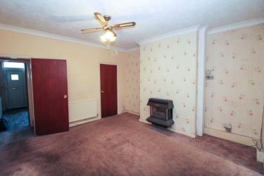 A front facing lounge with a double glazed window and entrance door, coving, radiator and real flame gas fire.