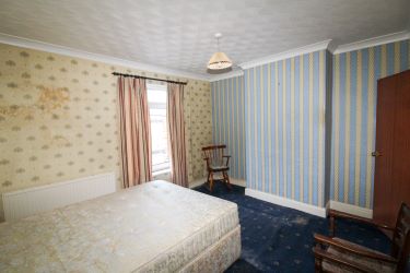 A large front facing double room with useful built in storage, a radiator and a double glaze window.