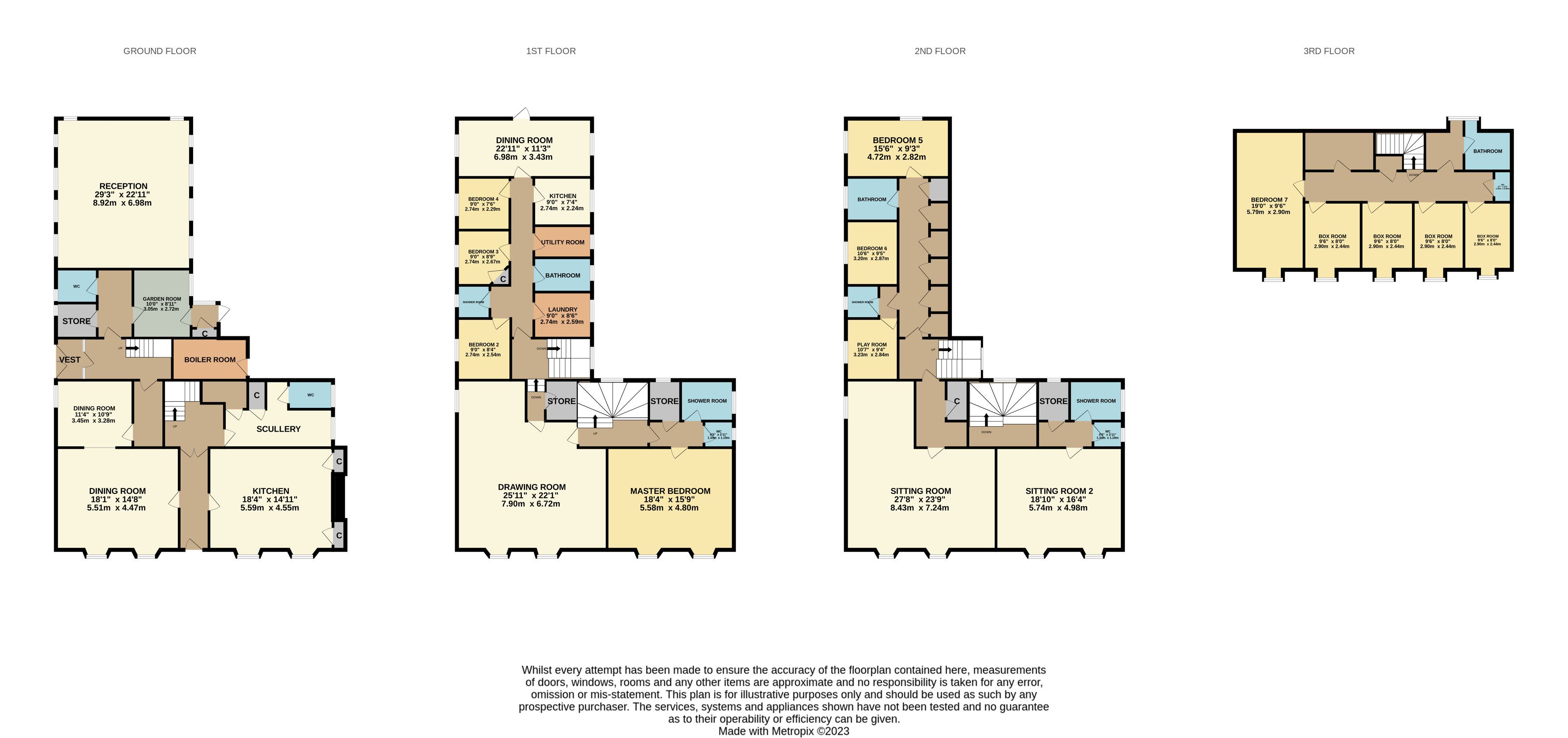 The rear wing is accessed from the ground, first and second floors of the original property. From the hall, an oak staircase leads up to the first and second floors. The ground floor comprises a large room currently utilised as a pole dancing studio, WC, store, and garden room. The first floor of the rear wing comprises what could be utilised as a self-contained flat, with lounge, kitchen, utility, bathroom, laundry room, shower room and three bedrooms. The second floor of the rear wing has three bedrooms, bathroom, shower room and storage cupboards. Council Tax Band : H.