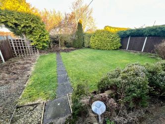 To the front of the property is a mature lawned garden with boarder hedging and adjoining block paved driveway which provides off street parking and leads to a detached brick built garage. The rear of the property is a further mature lawned garden with planted boarders. Block paved pathway allows further access down the side of the property and a block paved patio seating area with further gravelled boarders and surround fencing.