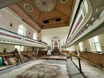 The split allows for 4 two-bedroom flats within the former chapel and provide 1 two bedroom flat and 2 one-bedroom flats within the former vestry with the one-bedroom flat as an affordable unit.