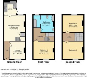 99SQM / 1065SQ FT FOUR BED TWO RECEPTION THREE STOREY MID TERRACE HOUSE FIRE DAMAGED.