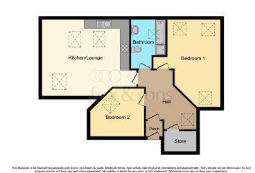 Entrance Hall, Lounge/Kitchen, two bedrooms and a bathroom.