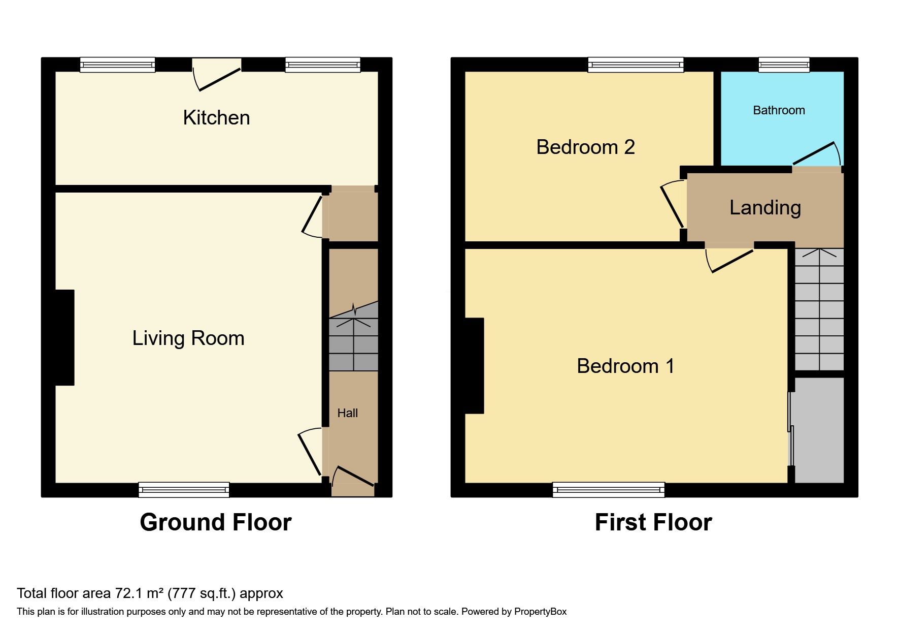 The accommodation briefly comprises: Ground Floor - Entrance door to lounge; Kitchen; Rear Yard. First Floor - 2 Bedrooms; Bathroom.