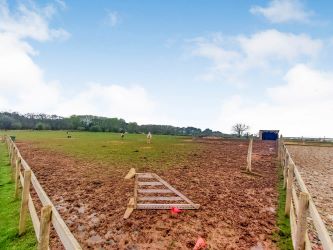 Unique and exclusive opportunity - Small holding / parcel of land formerly used for paddock/equestrian and breeding of farm animals, plus potential for leisure use (subject to current certificate in legal pack). Approximately 3. 6 acres comprising all weather ménage, modern stable blocks and several paddock areas. Various mains water points, solar powered electricity supply and 2 W/C facilities, barns, hay shelters and wooden storage sheds, plus base for Yurt in the bottom field!