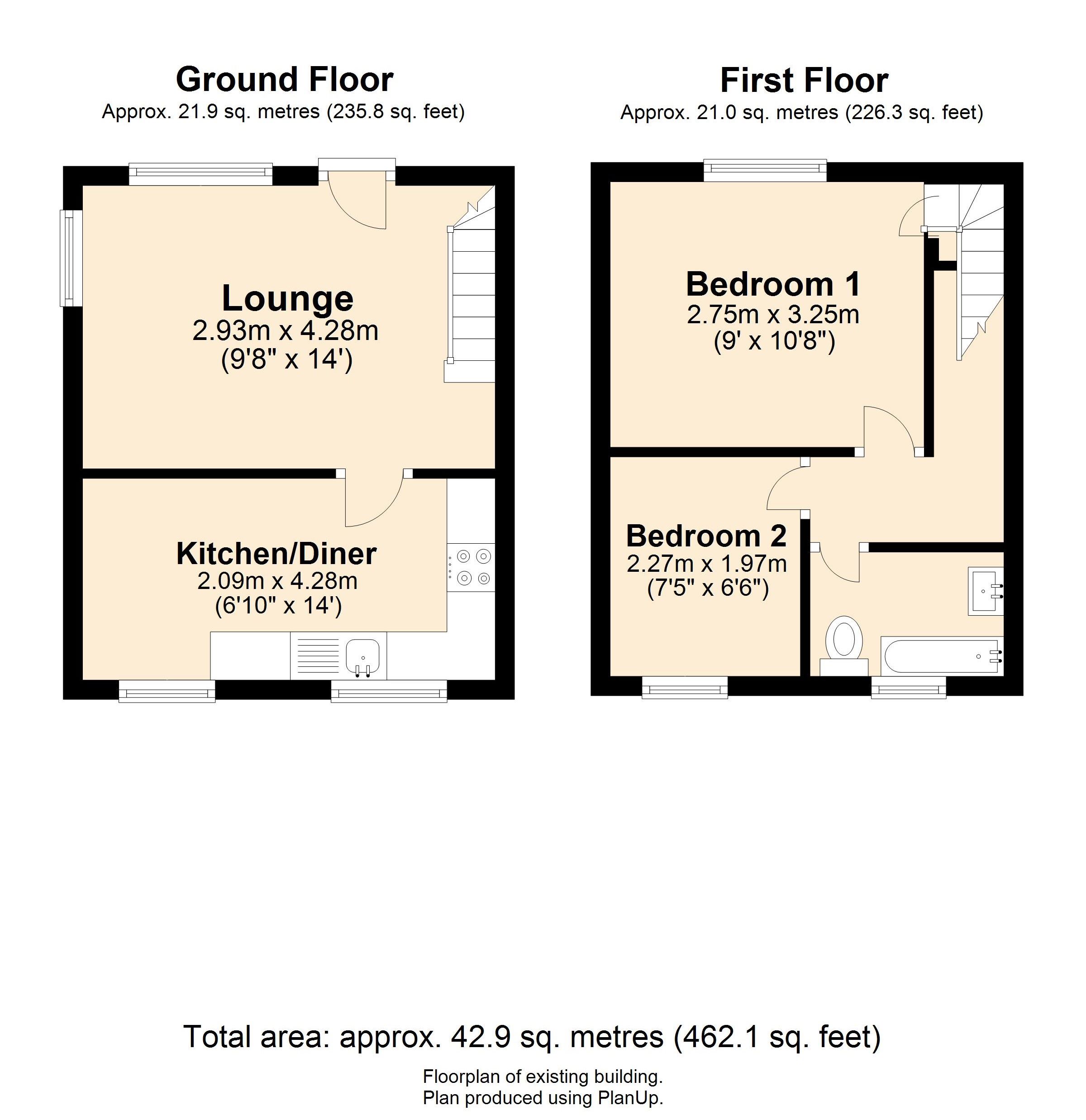 Bedroom 1, Bedroom 2, Bathroom with shower & WC