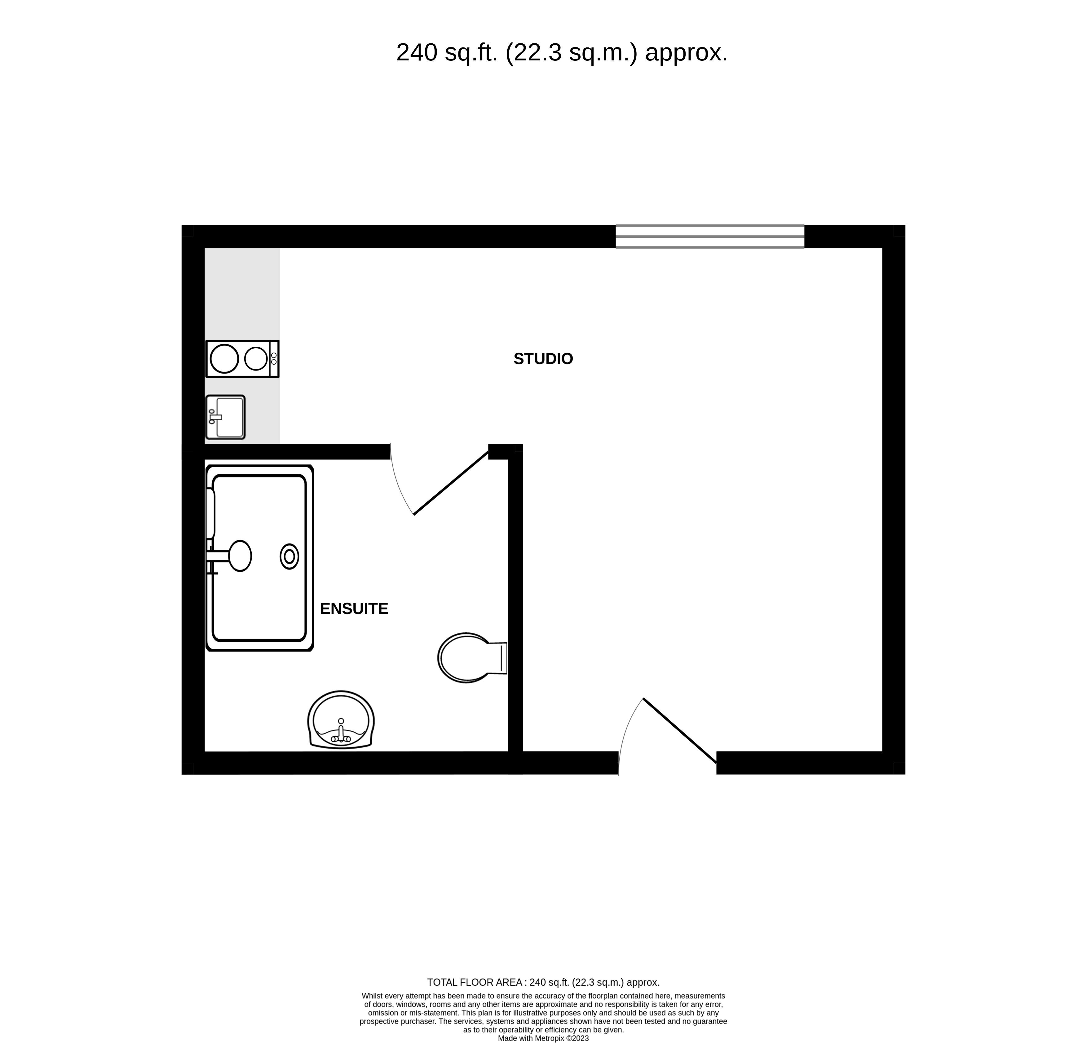 Ensuite Studio Flat 5.48m x 4.10m Combined, lounge/bedroom. Kitchenette area, and large ensuite shower room.