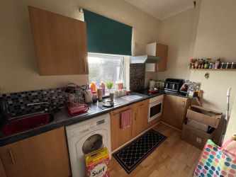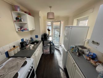 Kitchen - 9'9 x 7'5 - Base and eye level units. Stainless steel sink unit. Window to the side. Door to the rear. Radiator.
