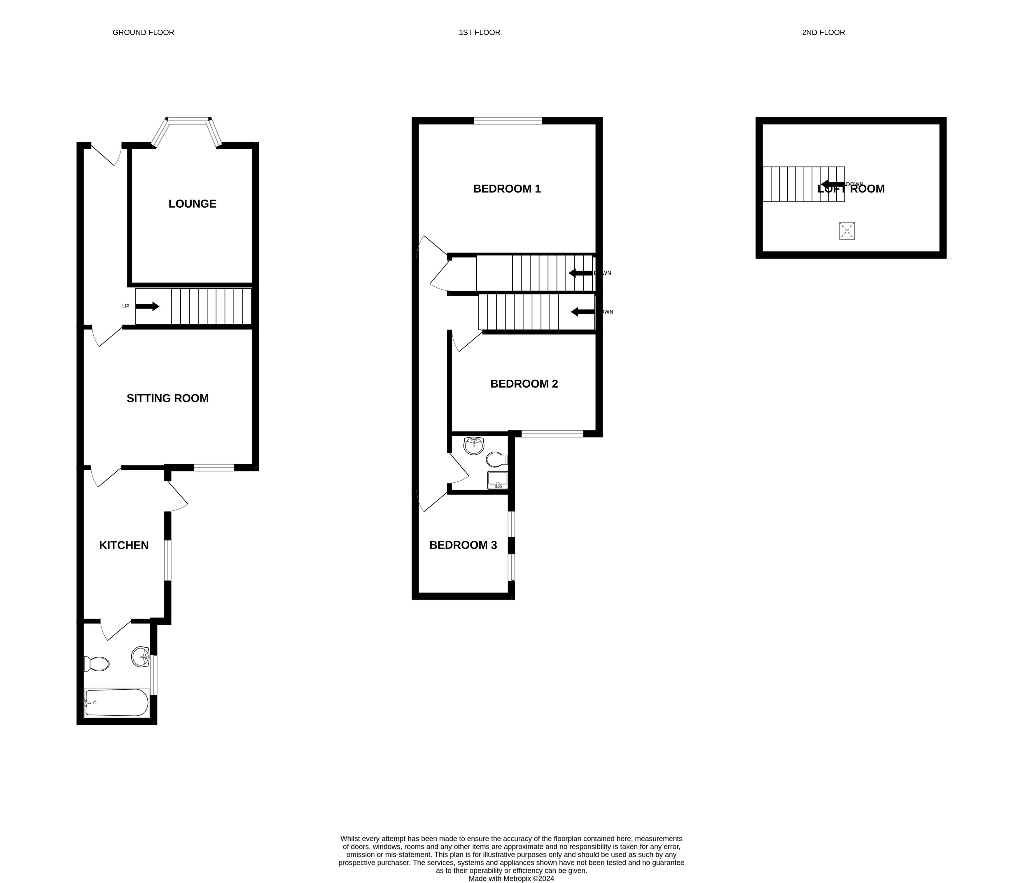 First Floor Landing and access to loft room., Bedroom 1 4.65m x 3.52m, Bedroom 2 3.73m x 2.86m, Bedroom 3 2.40m x 2.20m, Shower room 1.73m x 1.44m. Loft Room 4.07m x 3.03m