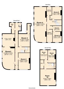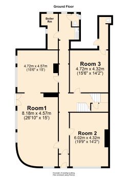 Ground Floor: Entrance hall with stairwell to upper floors, door to Cellar. 3 main rooms, outoffices/stores incl. boiler room and Sep wc.