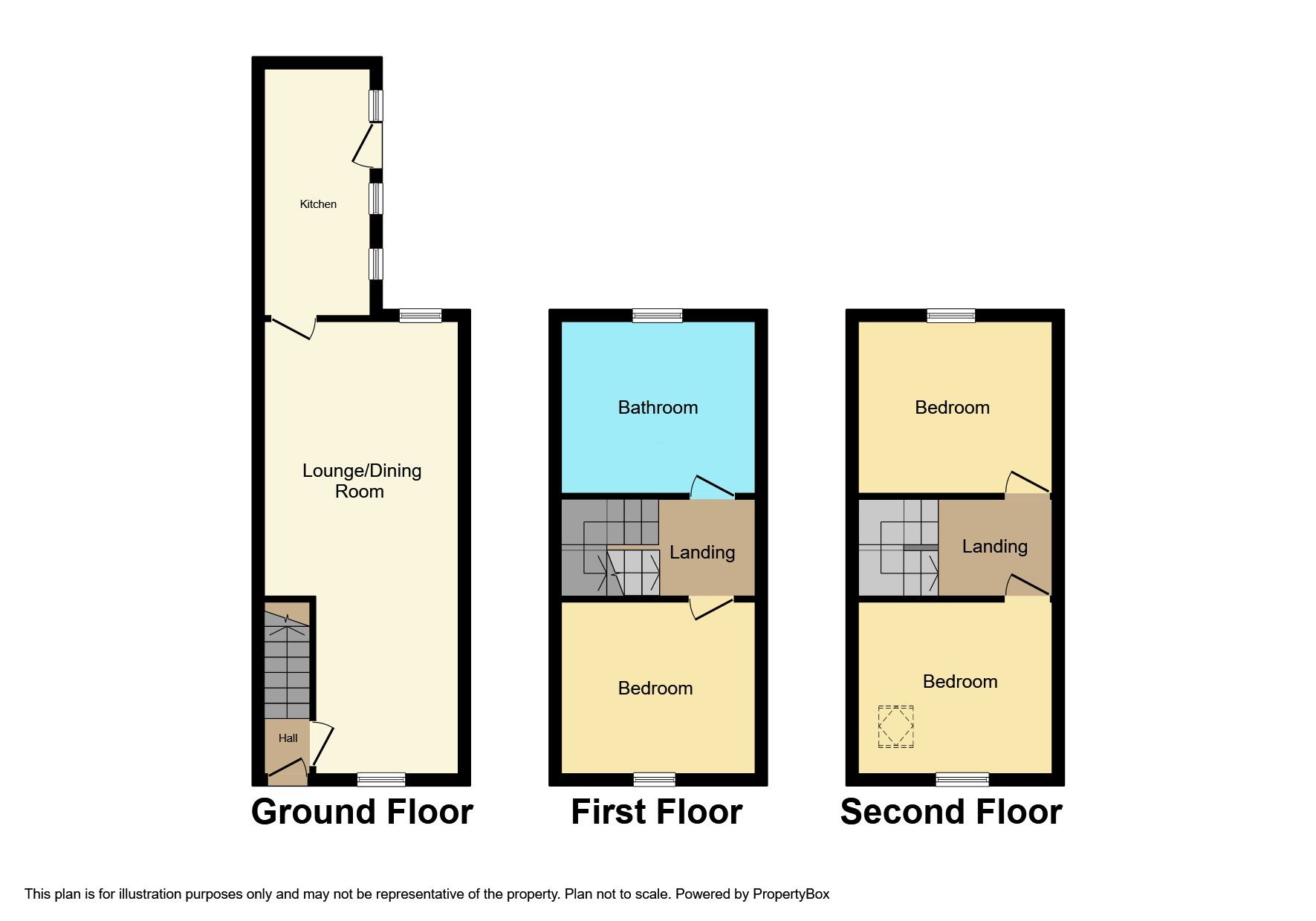 Three bedroom terraced property over 3 floors. In good condition, the property comprises: hall, lounge/dining room and kitchen to the ground floor, bedroom and bathroom to the first floor, 2 bedrooms to the second floor. Rear yard.