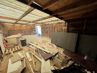 This spacious detached building was formally a DIY store with living space. Comprising of a spacious shopfloor with numerous rooms, a downstairs reception room and kitchen. The first floor contains another spacious workshop space, as well as two bedrooms and a bathroom. The second floor has another two bedrooms. To the outside of the property is an outbuilding, a large garage/workshop, and a spacious yard.