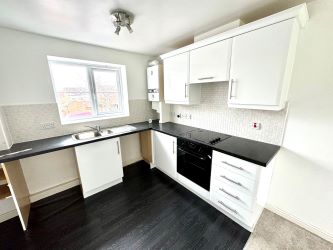 Open Plan Lounge/Dining Room/Kitchen. Living Area: 4.6m x 4.2 m max with two windows to rear leading into Kitchen 2.3m x 2.7m with sink unit with drainer, base and wall units with integrated oven and hob (not tested) and wall mounted gas central heating boiler (not tested).