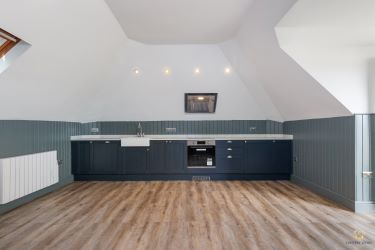 First Floor Open lounge/living/kitchen/dining with balcony.