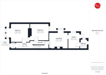 Flat 1 Entrance, Bedroom One, Bedroom Two, Living Room, Kitchen, Bathroom. Gas fired central heating.