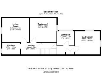 Landing, Living room, Kitchen, Bedroom one, Bathroom, Bedroom two.