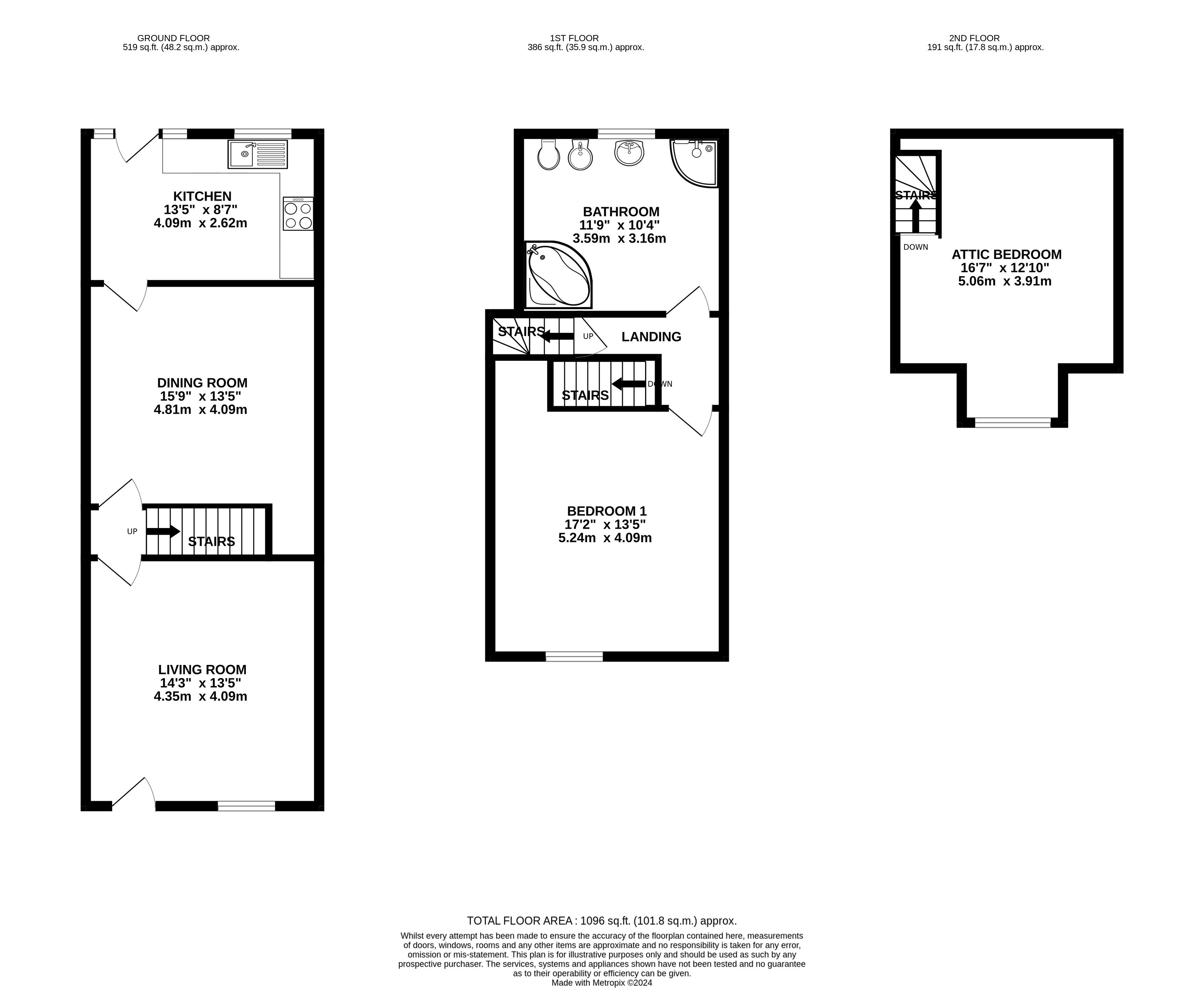 To the ground floor there is a Living Room, a Dining Room, a Kitchen and access to the cellar. Upstairs on the first floor is a spacious double Bedroom and large Family Bathroom. Up a further stairway is the well sized Attic Bedroom.