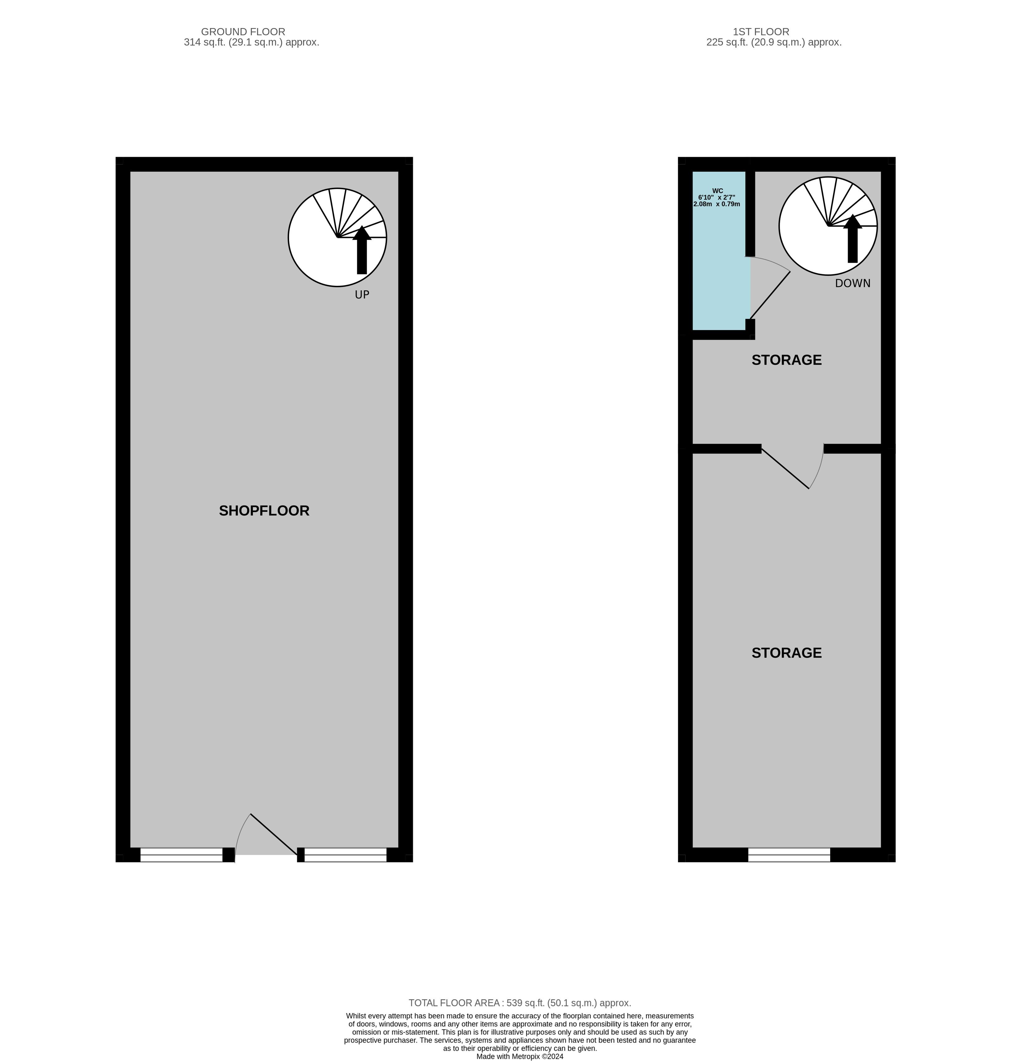 Comprising of a spacious shop floor space with spiral stairs leading to a further storage space and a w.c.