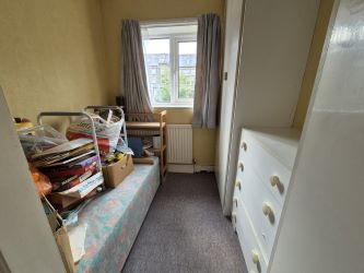 With single radiator, bay window, coving to the ceiling, two wall light points and an ornamental fireplace.