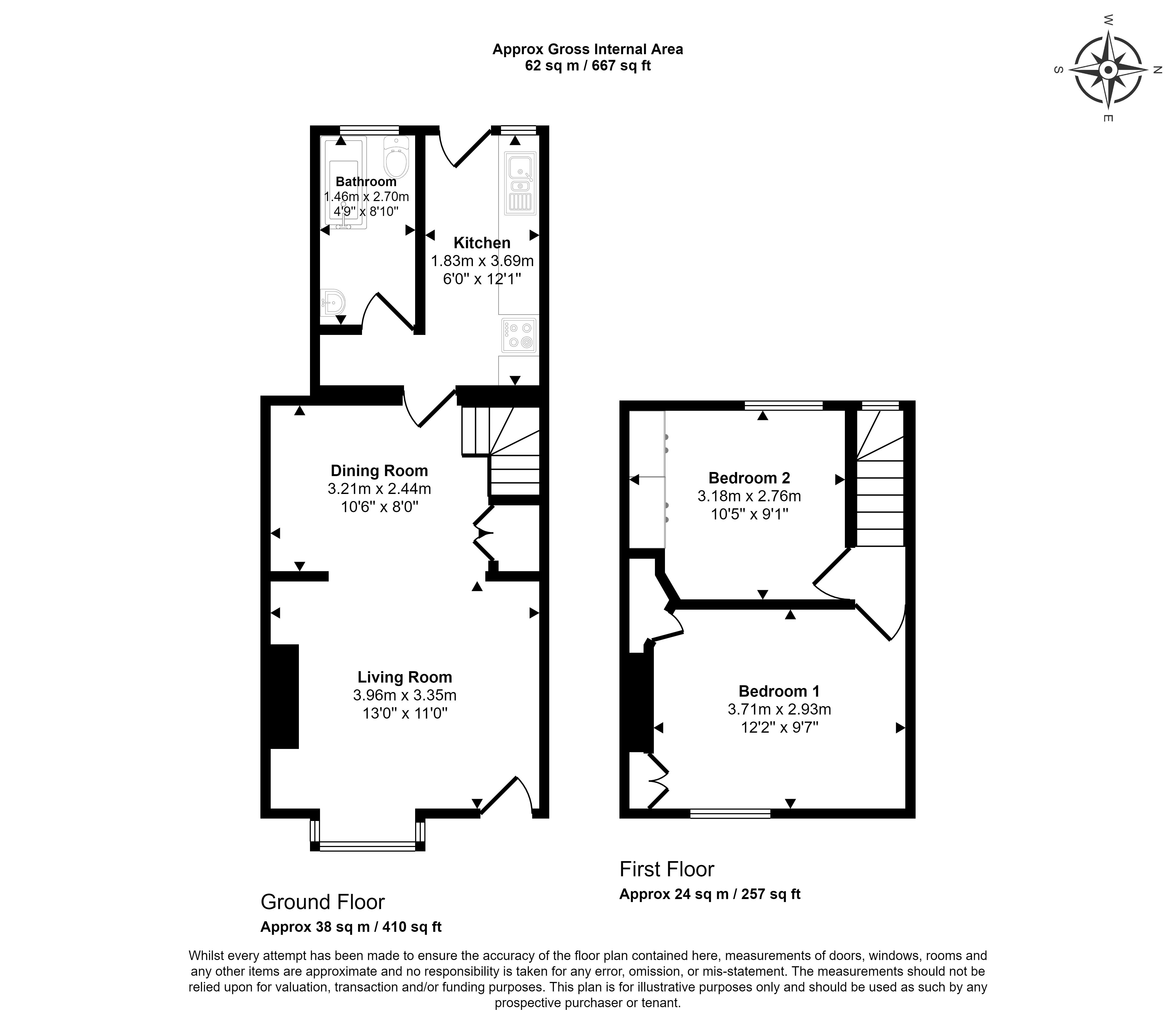 The property compromises of an open-plan Living Room through Dining Room, Kitchen and Bathroom downstairs. Upstairs there are 2 double bedrooms.