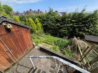 To the front of the property lies a tiered front garden and across the street lies a single garage and driveway belonging to the property. To the rear of the property lies a tiered private rear garden with storage shed and seating area.