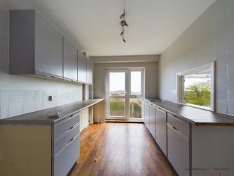 With single radiator and boiler cupboard housing the wall mounted combination boiler.