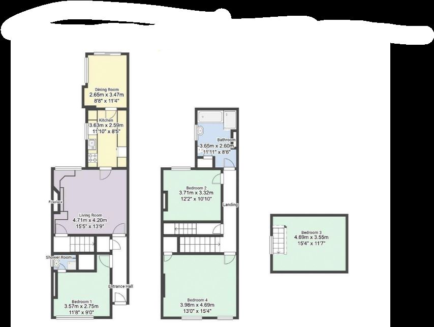Comprising a living room, kitchen, dining room, w/c and bedroom to the ground floor. On the first floor is two bedrooms and bathroom. On the top floor is a further bedroom.