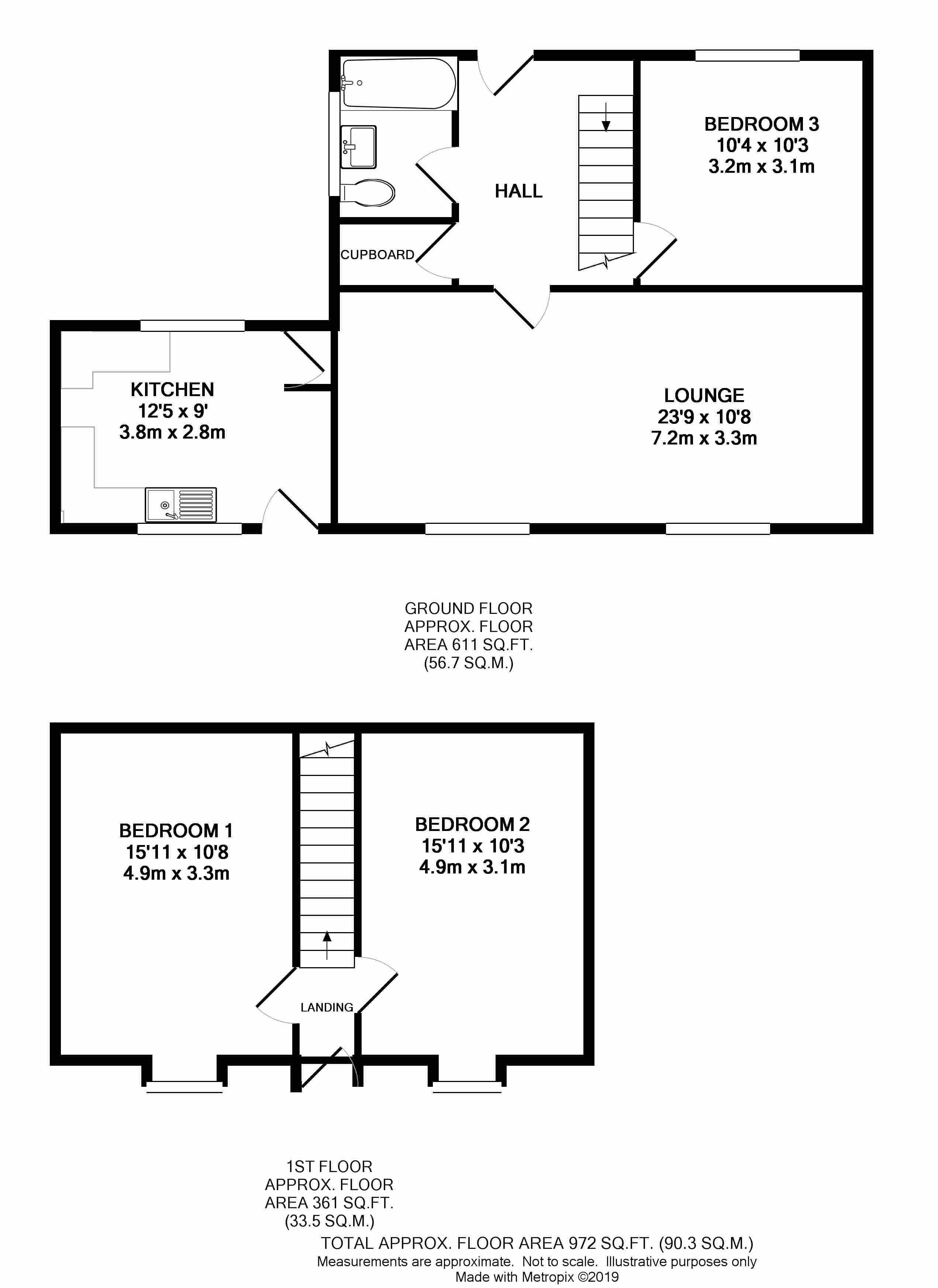 Hall, lounge, kitchen, bedroom 3, bathroom
