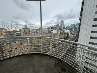 A luxury three bedroom 6th floor apartment with views of the O2 and River Thames with balcony, access to gym and roof top garden