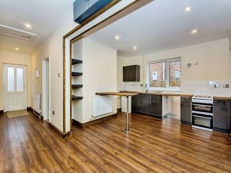 Hallway, open plan kitchen diner, living room, three bedrooms, bathroom, low maintenance front garden and driveway with rear gardens.