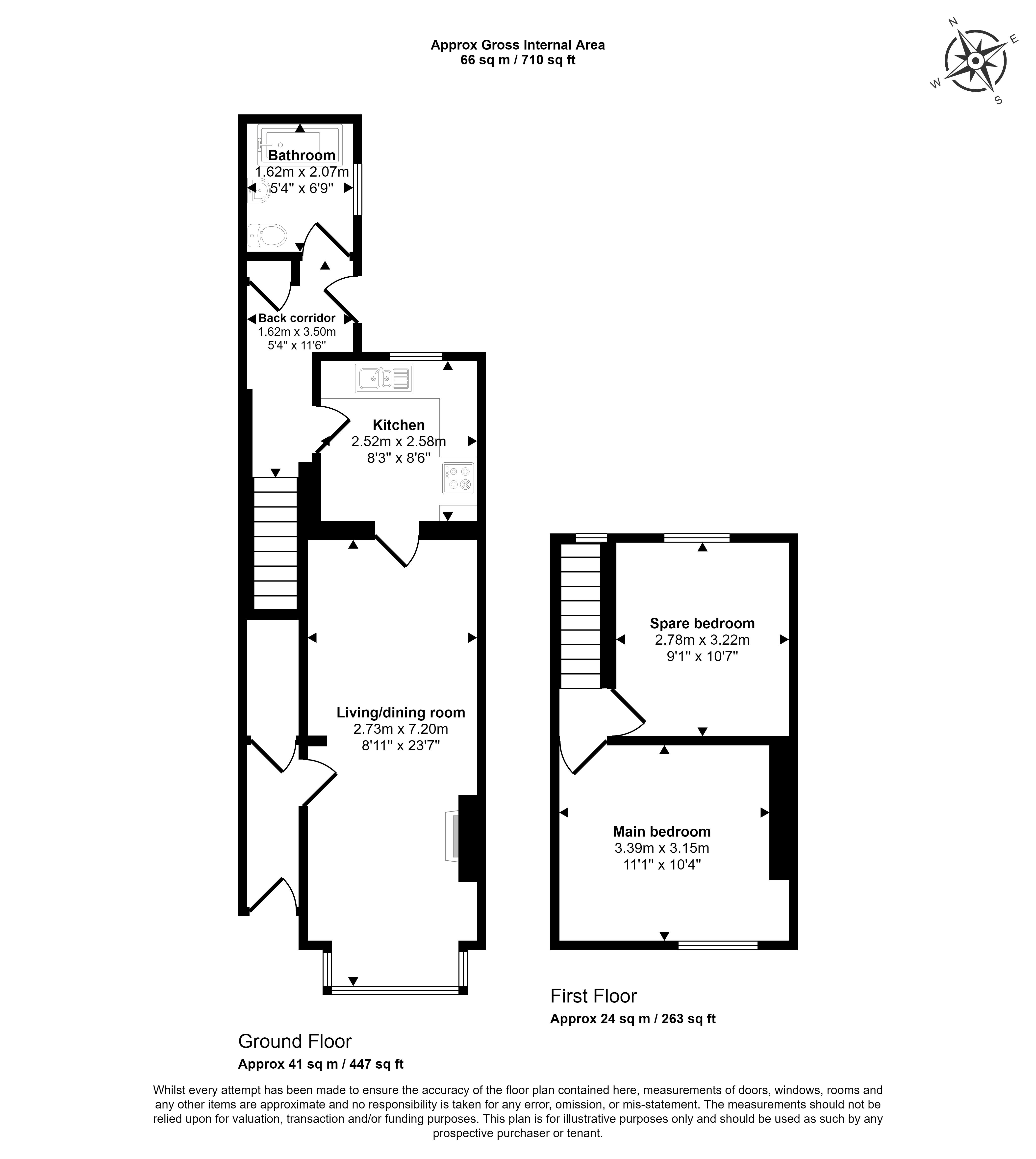 The property compromises of an Entrance Hall, an open-plan Living Room through Dining Room, a Kitchen, a rear Hallway and a Bathroom downstairs. Upstairs there are 2 double bedrooms.