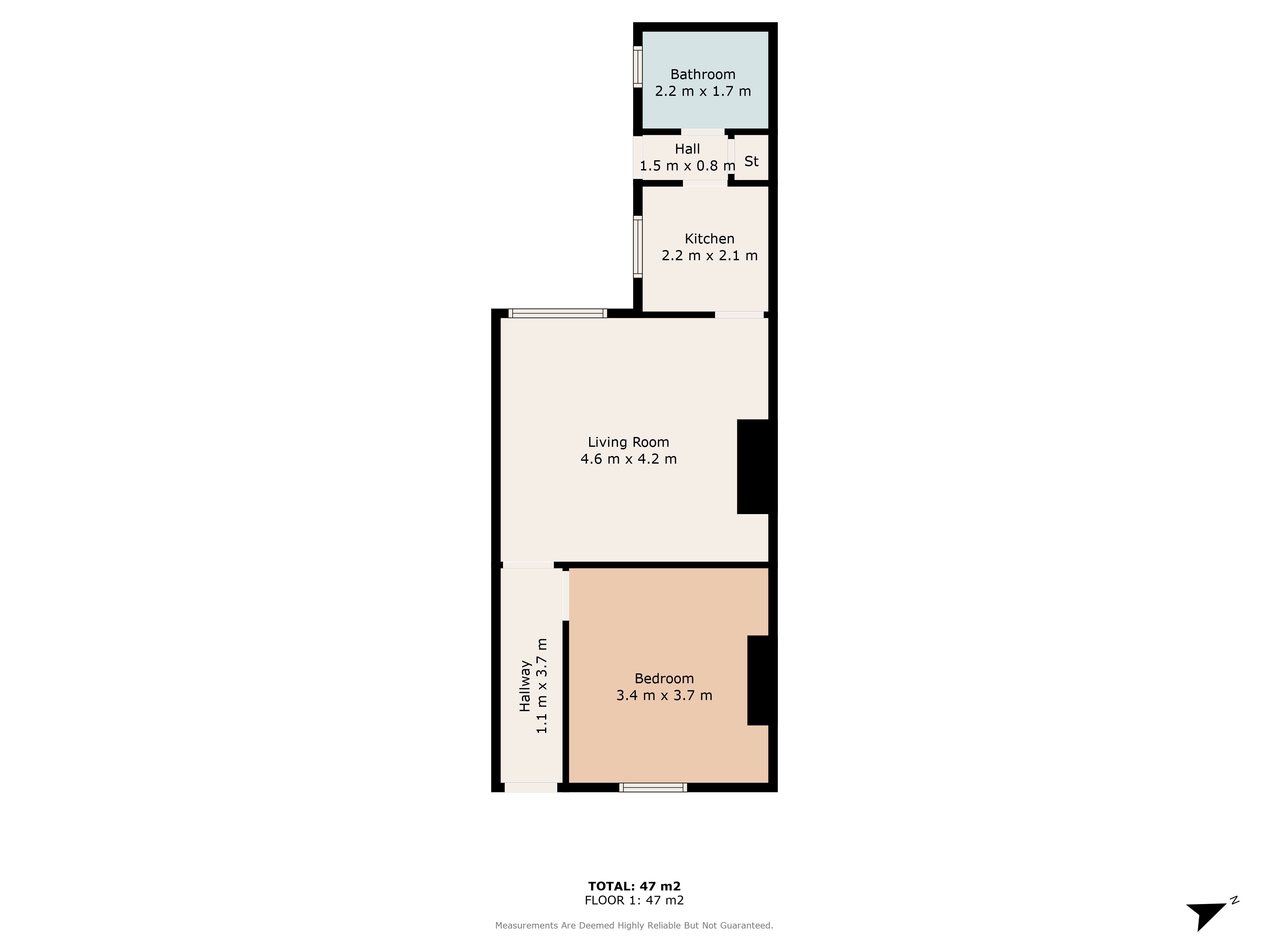 The property compromises of an Entrance Hall, a Living Room, a Kitchen, a double Bedroom, a small Storeroom and a Bathroom.