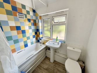 Double glazed window to the rear of the property, central heating radiator, bath with shower over, wash hand basin, W.C, tiling to splash prone areas, new flooring ( fitted July 2021).