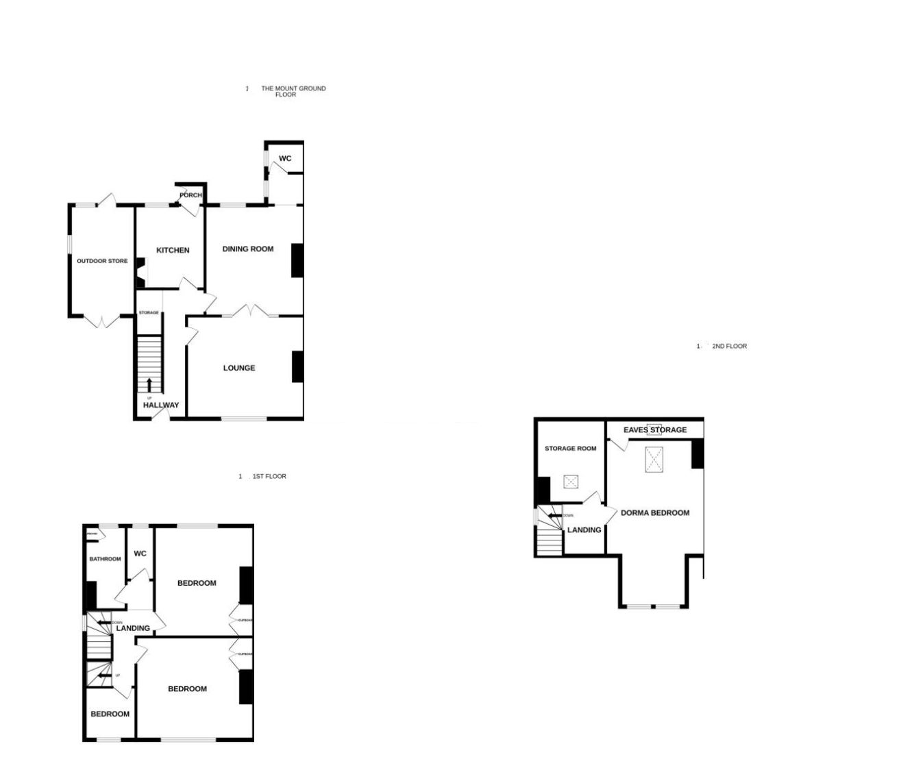 Ground Floor: Hallway, lounge, dining room, kitchen, wc. First Floor: Three bedrooms, bathroom, wc. Second Floor: Dorma bedroom, study, stoage room.
