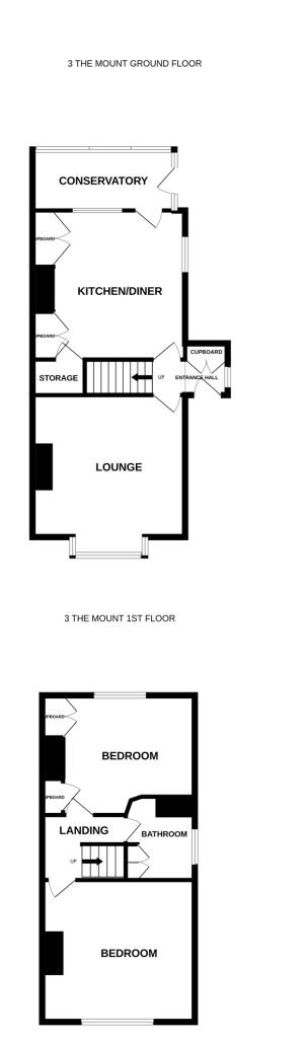 Ground Floor: Entrance hall, lounge, kitchen/diner, conservatory. First Floor: Two bedrooms and bathroom.