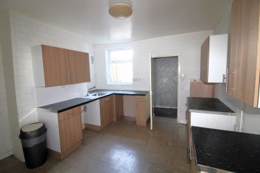 Having a range of modern units , with electric cooker point, radiator , and a rear facing double glazed window overlooking the garden - stairs to the first floor landing