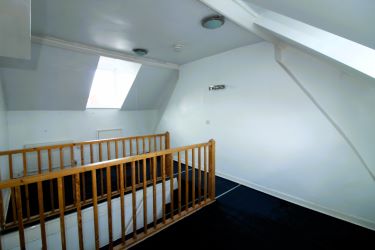 A spacious top floor bedroom with spindled balustrade and with a double glazed dormer window.