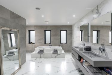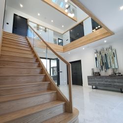 On the first floor, the luxurious principal suite stands out with a double-sided fireplace, cozy snug area, and a spa-like ensuite complete with a Japanese-style toilet, double open shower, bath, and his-and-hers sinks. This suite also includes a private balcony with stunning views of the rear garden. Three additional bedrooms, each with ensuite facilities, and a versatile space suitable for a gym or office complete this level.