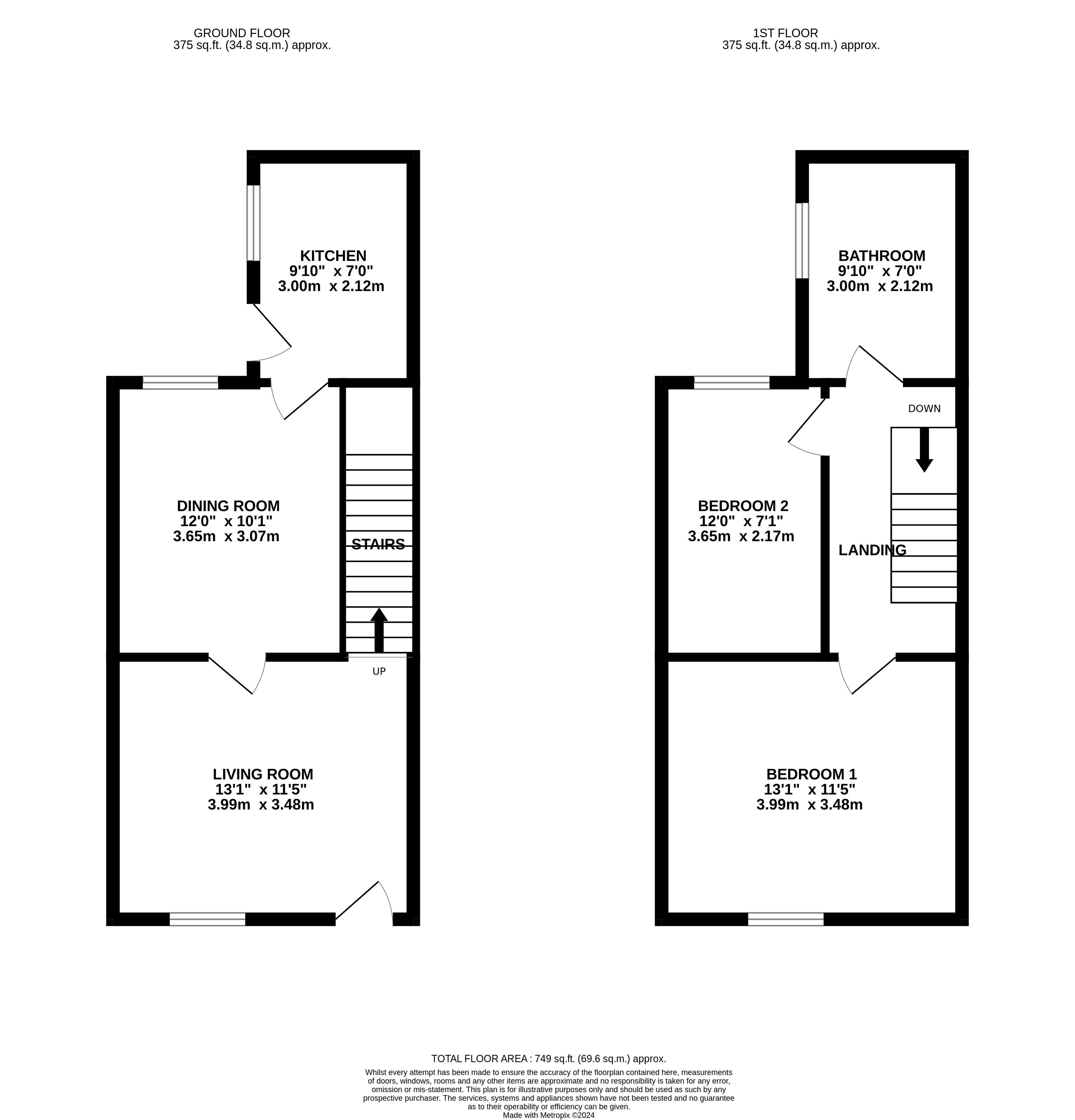 The property compromises of a Living Room, a Kitchen to the ground floor. On the first floor are two double Bedrooms and a Bathroom.