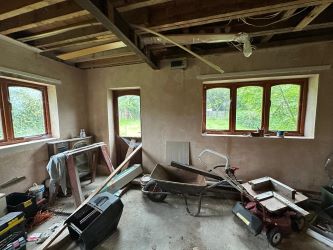 Windows to the front and side elevations, radiator