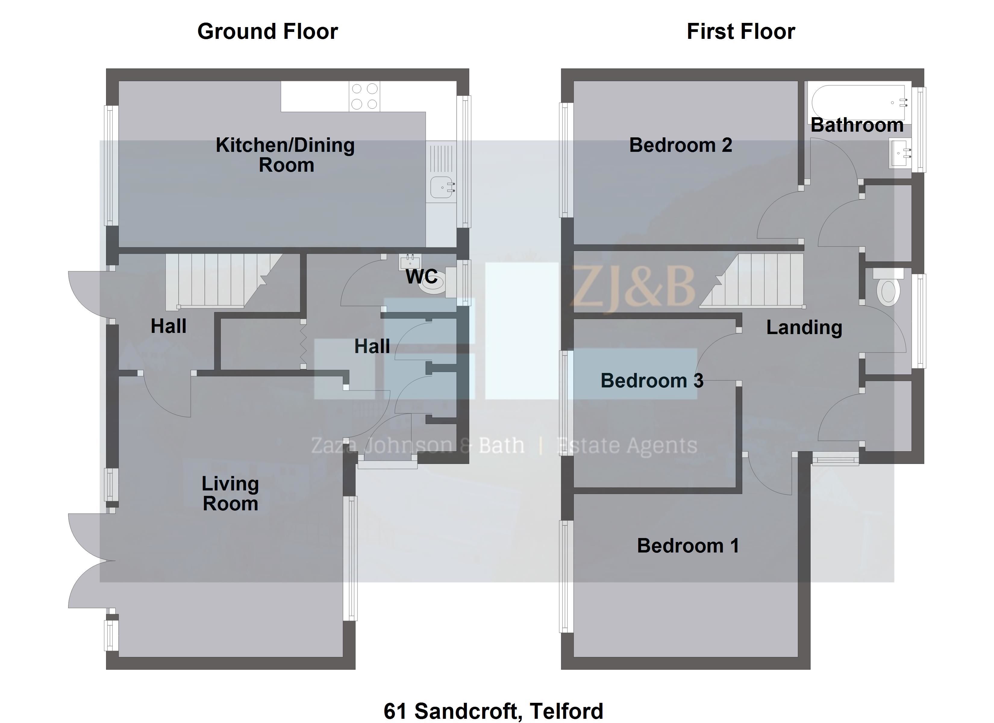 First Floor: Landing, family bathroom and 3 Bedrooms.