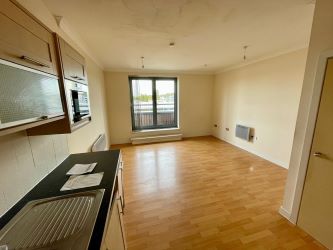 This apartment offers a spacious open-plan lounge, dining, and kitchen area, along with two bedrooms, each equipped with fitted wardrobes, and a bathroom. The property does need some light works throughout including new flooring and decoration.